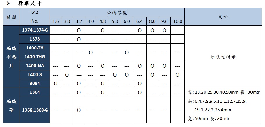 非石棉編織帶T.A.C 1364/1368