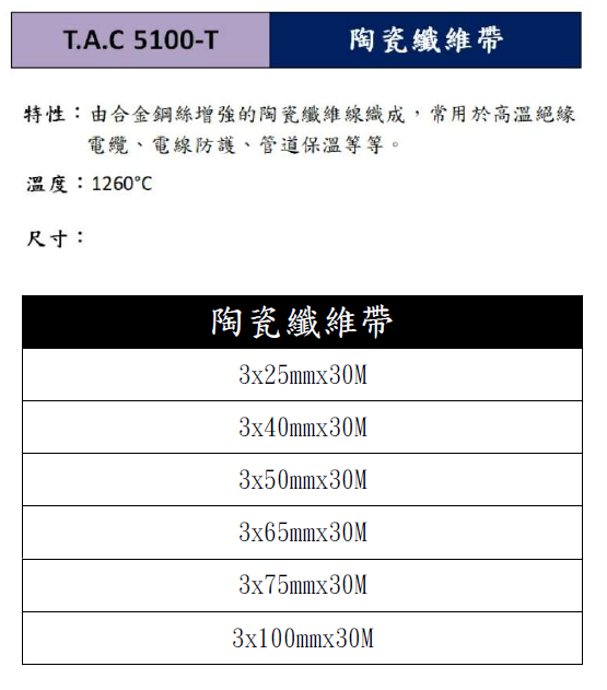 玻纖套管內含陶瓷纖維棉T.A.C 5103-G