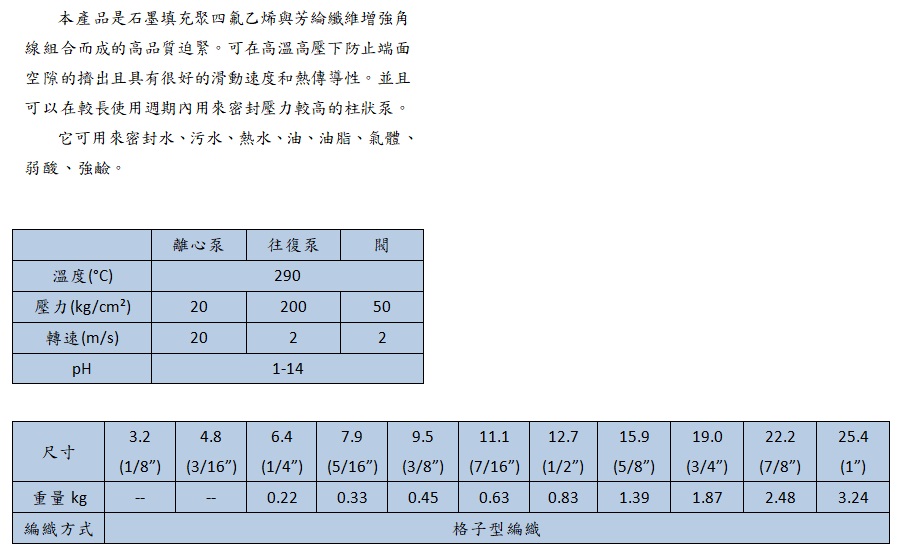 T.A.C 5035石墨鐵氟龍芳綸纖維盤根