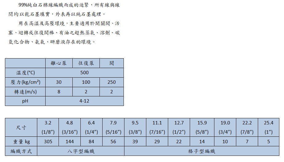 非石棉編織墊片
