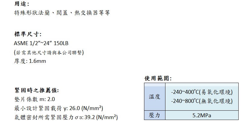 熱交換器專用渦卷型墊片T.A.C 1804-EX